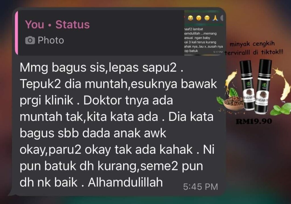 “Memang bagus sis, lepas sapu², tepuk² dia muntah kahak”