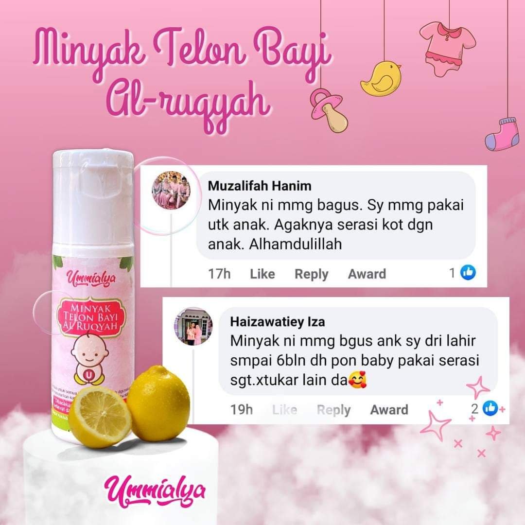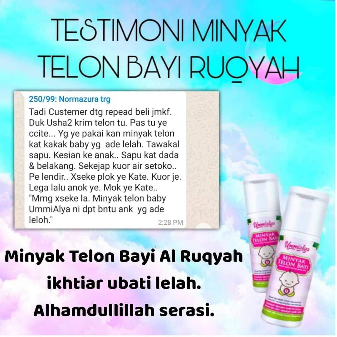 Minyak Telon ni sudah diruqyah, zikir & selawat sebagai Syifaa’ bayi. In Shaa Allah membantu.